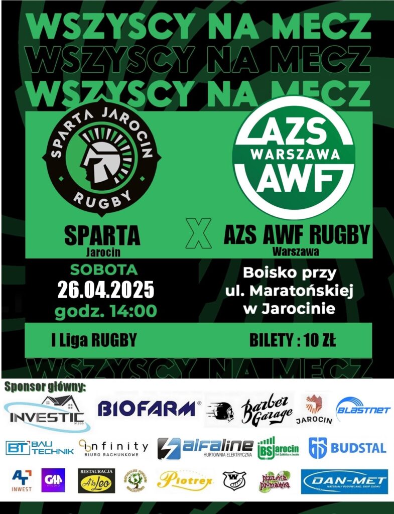 Wszystkich kibiców oraz sympatyków zapraszamy w najbliższą sobotę na Boisko Rugby w Jarocinie. Początek spotkania o godzinie 14:00.