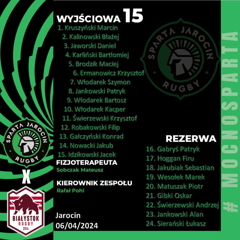 Kadra na mecz z Rugby Białystok