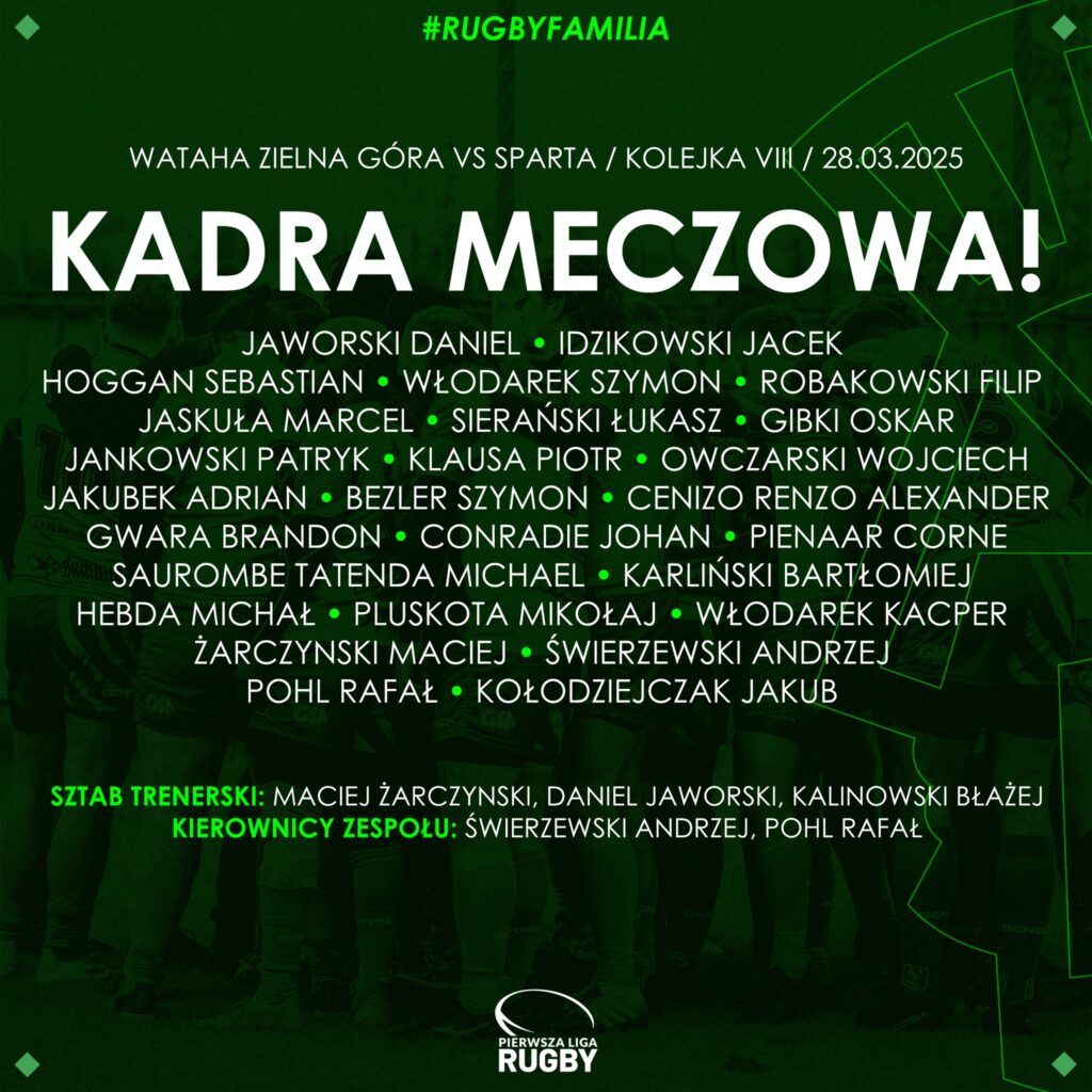 Powołania na mecz z Legia Warszawa Rugby